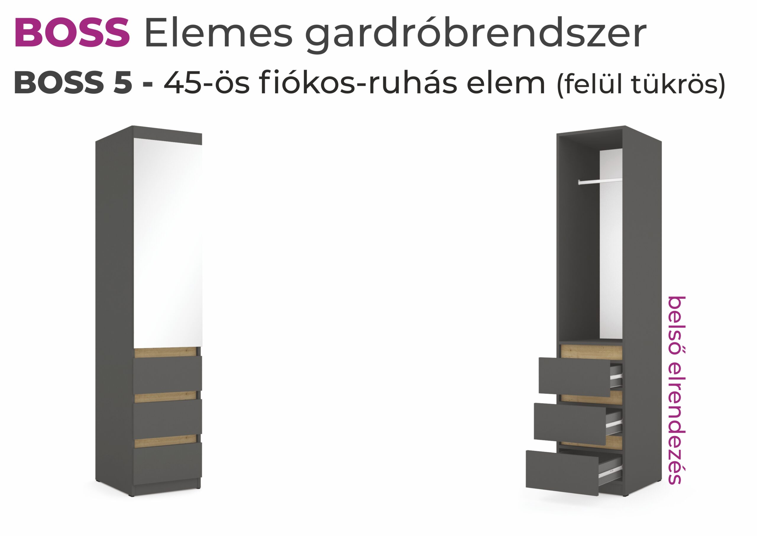 BOSS5-fiókos ruhás elem 45 cm (felül tükör): 67 500 Ft