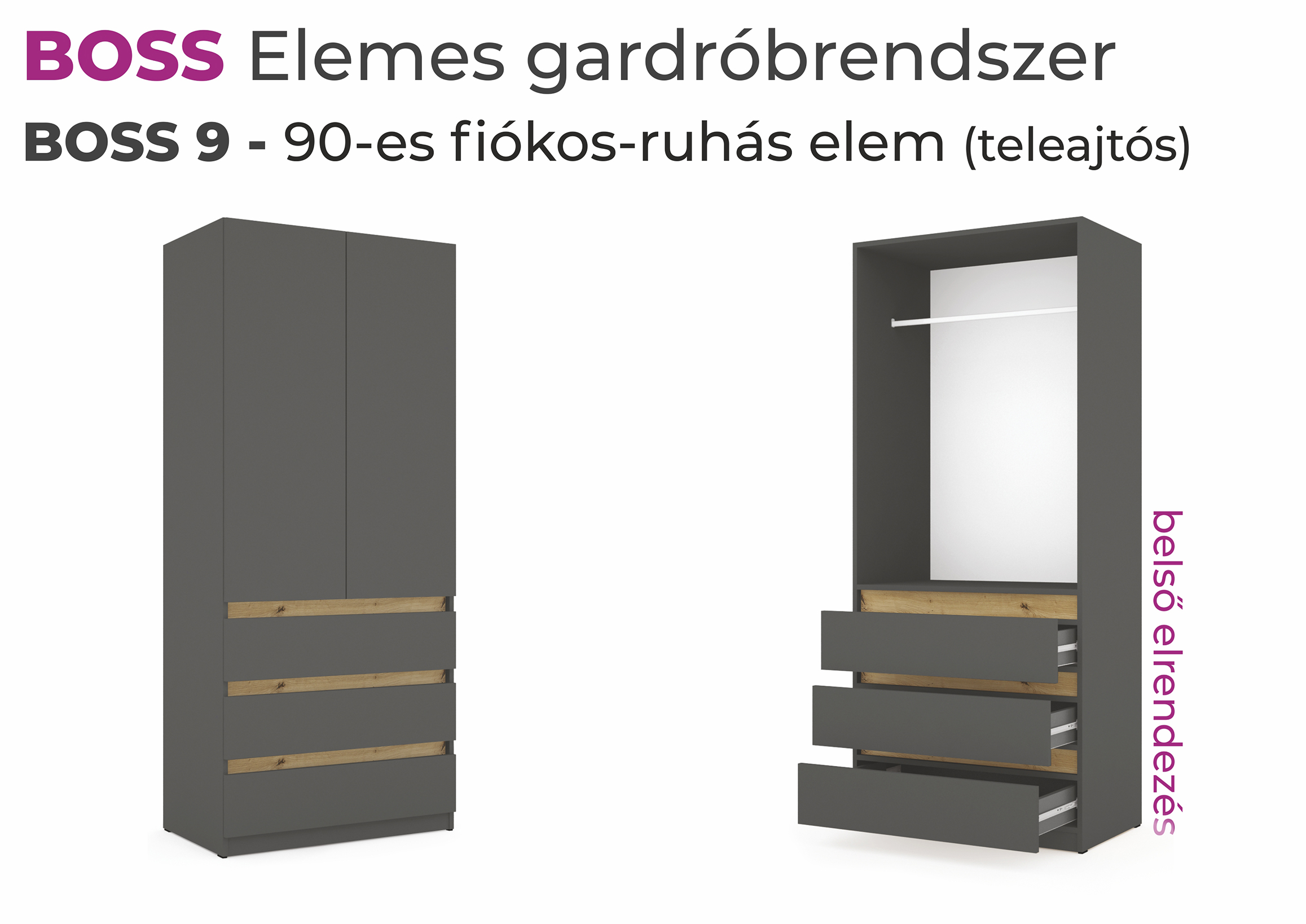 BOSS9-fiókos ruhás elem 90 cm (teleajtós): 87 000 Ft