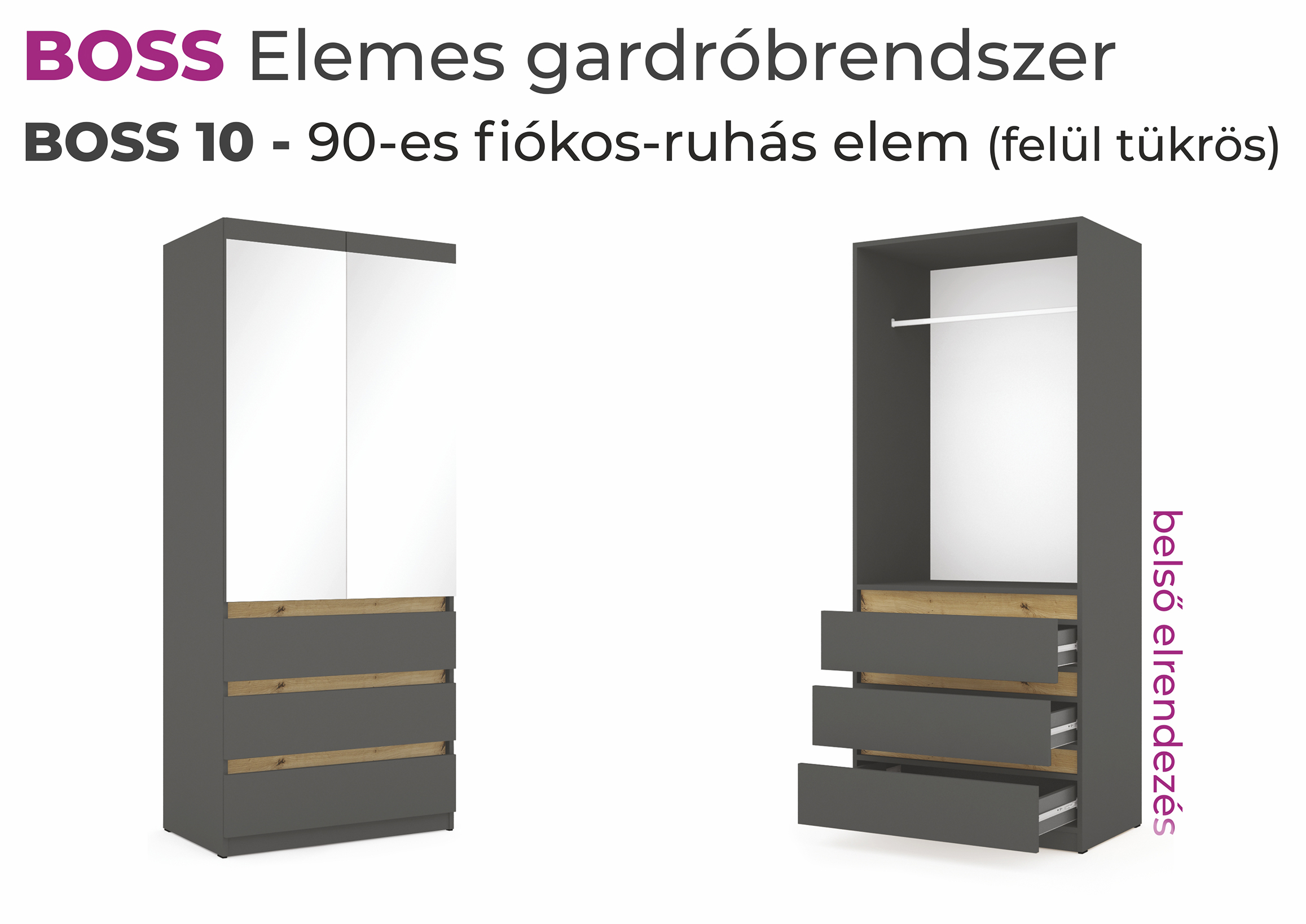 BOSS10-fiókos ruhás elem 90 cm (felül tükör): 98 500 Ft