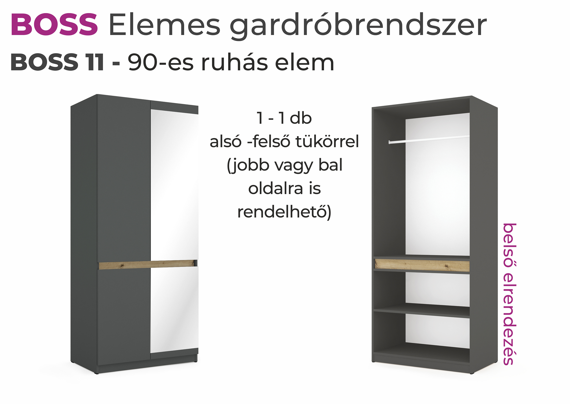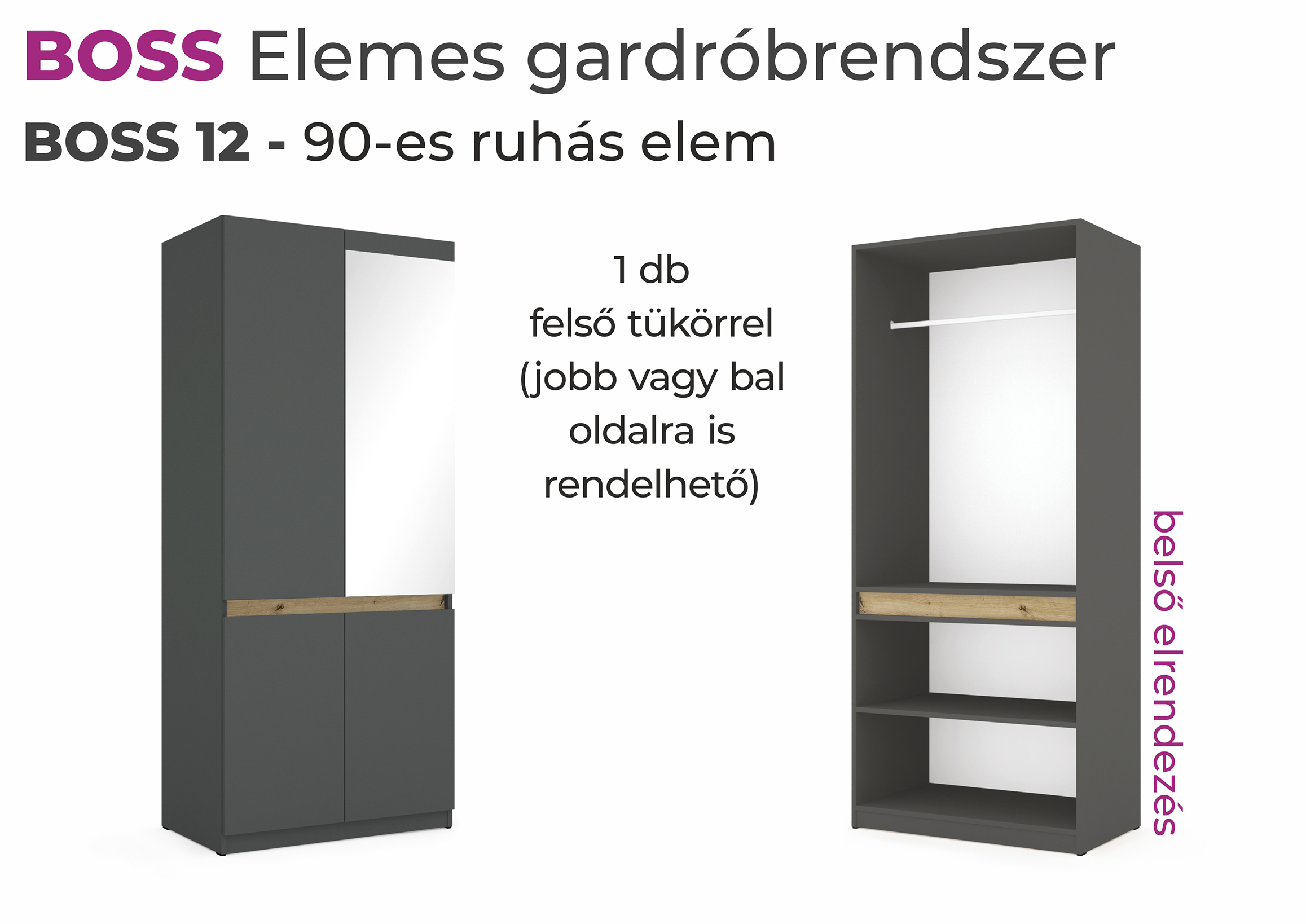 BOSS12-ruhás elem 90 cm (felül 1 tükör): 74 400 Ft
