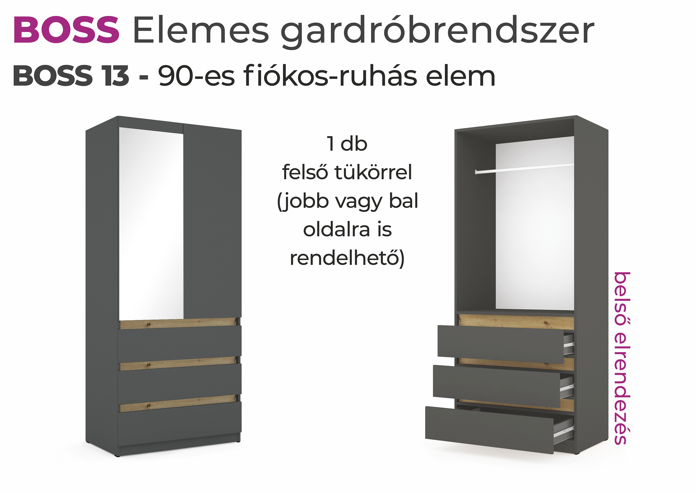 BOSS13-fiókos ruhás elem 90 cm (felül 1 tükör): 92 200 Ft