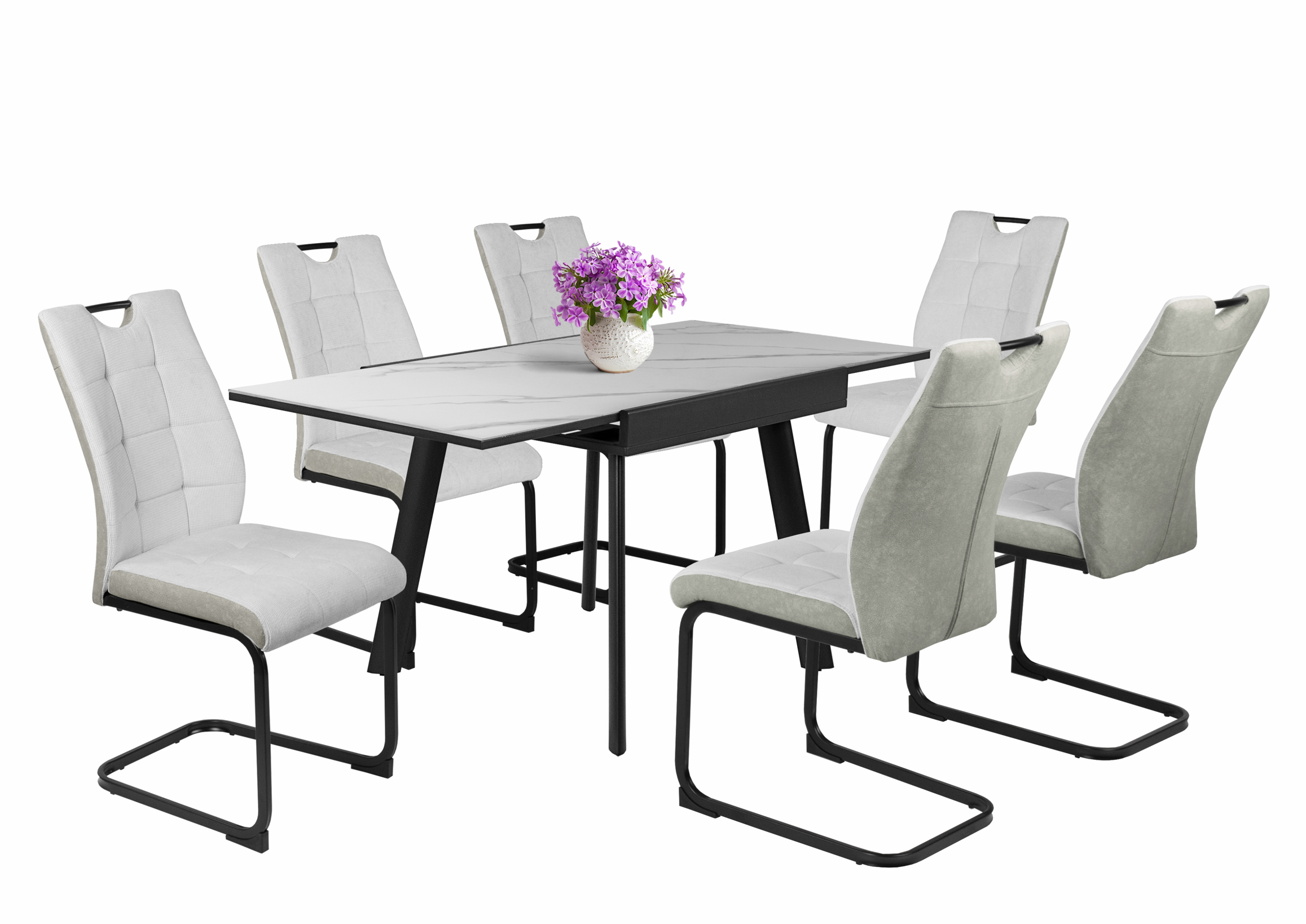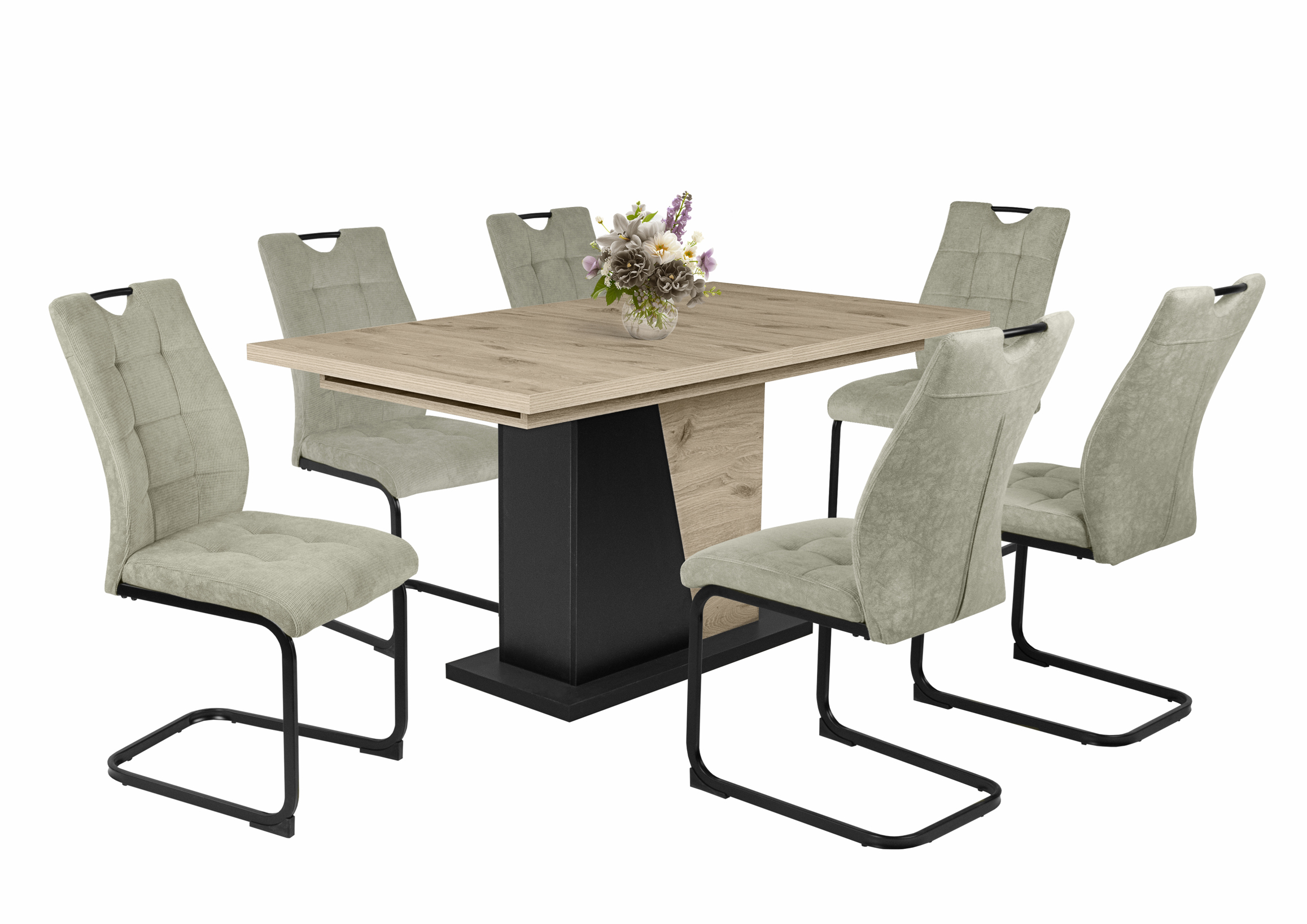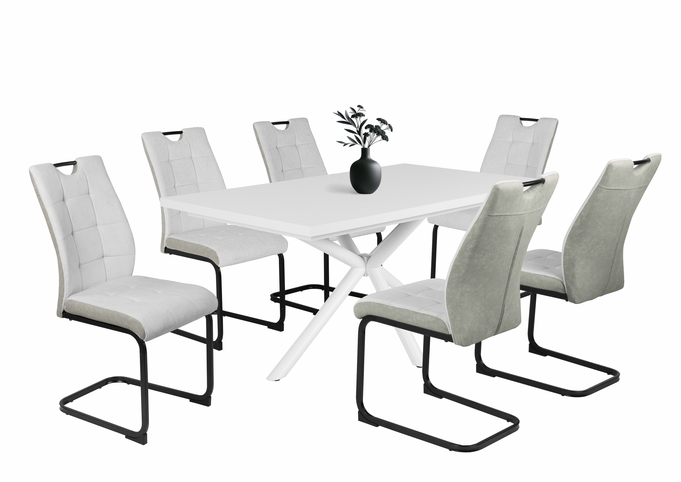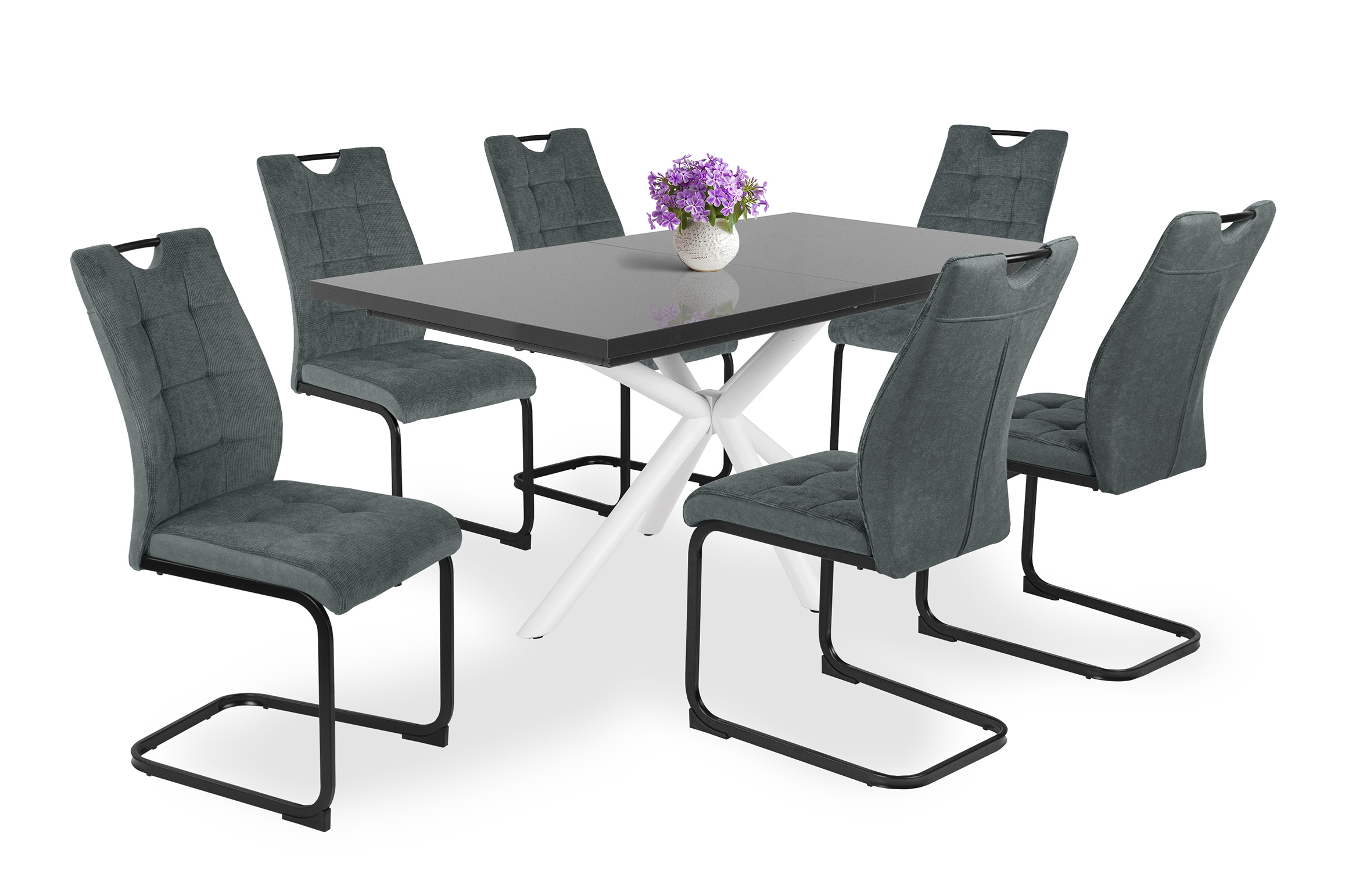 – Szövet ülőfelület és háttámla, hátoldalán velúr hatású kárpittal, fekete porfestett fém láb.