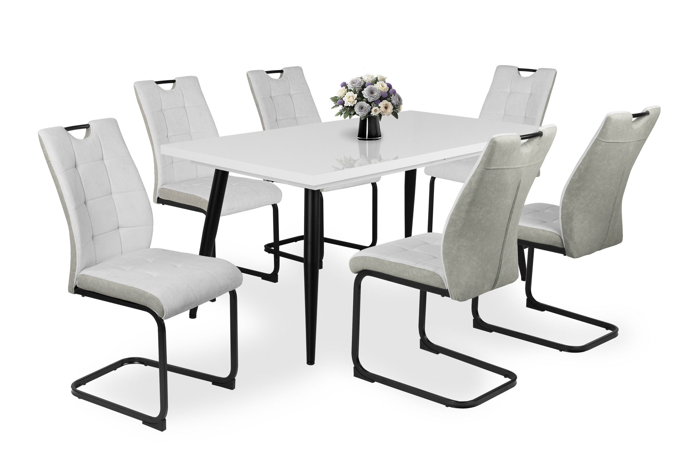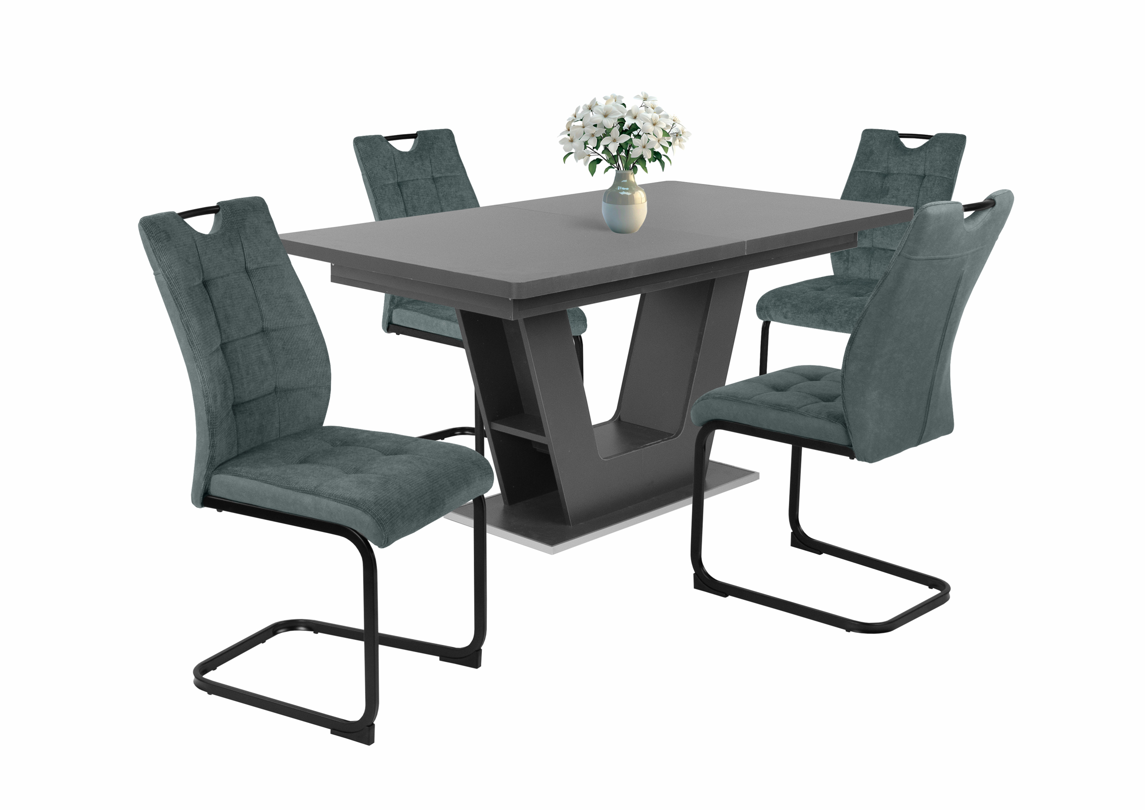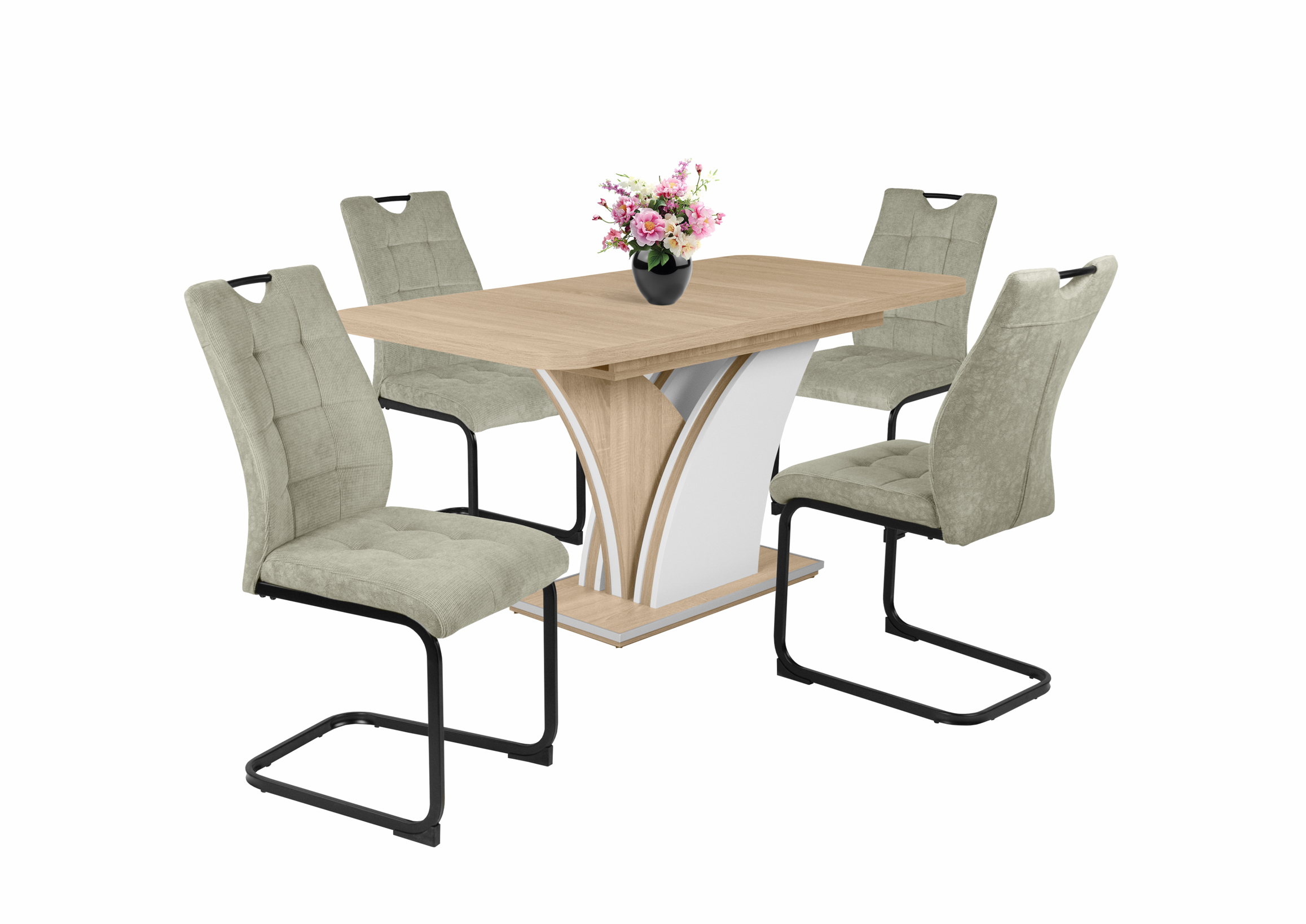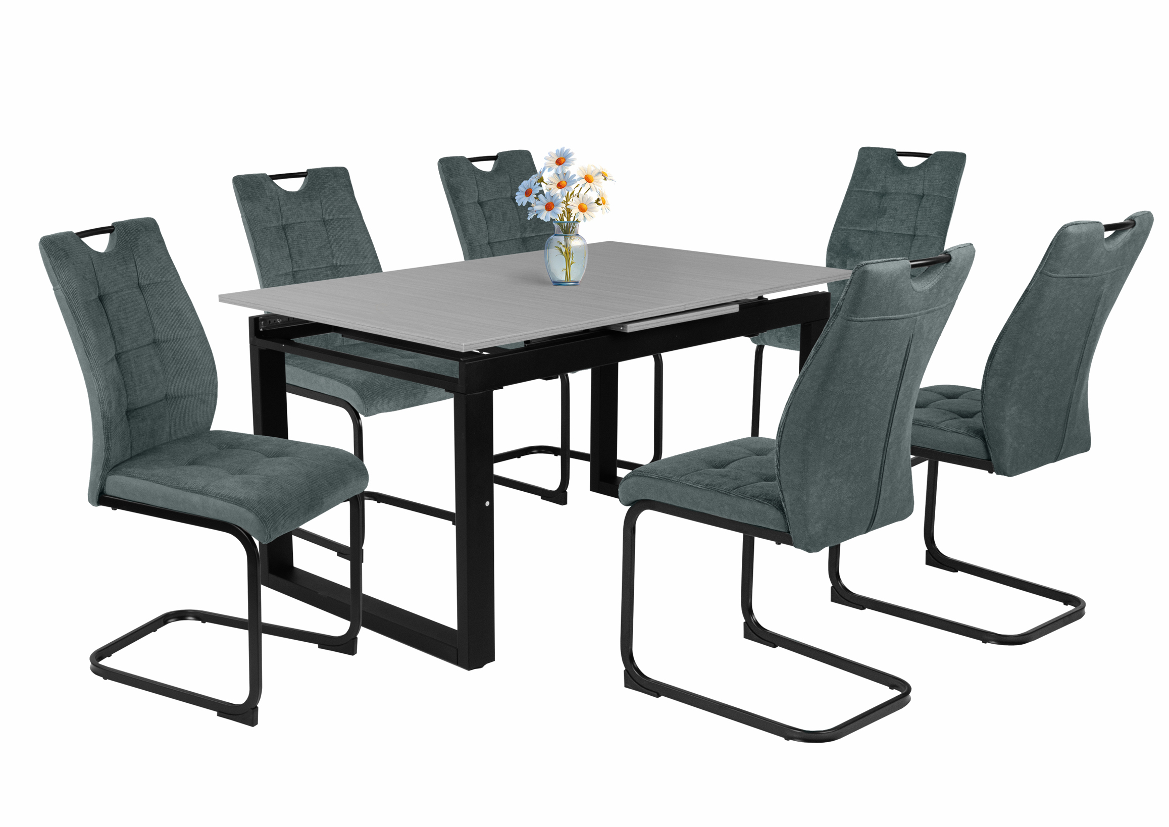 – Szövet ülőfelület és háttámla, hátoldalán velúr hatású kárpittal, fekete porfestett fém láb.