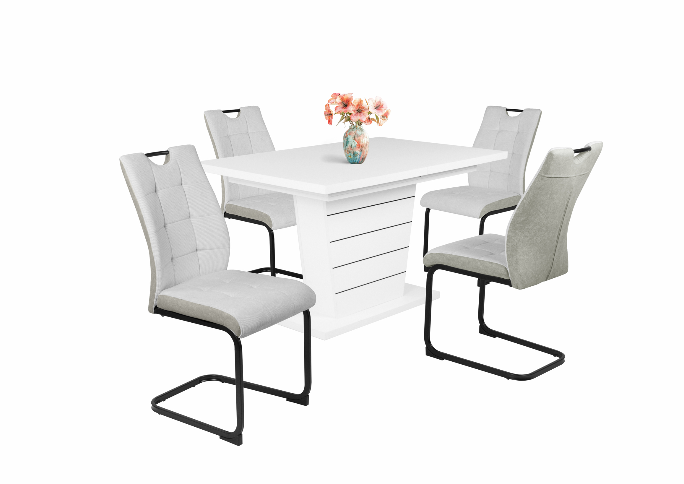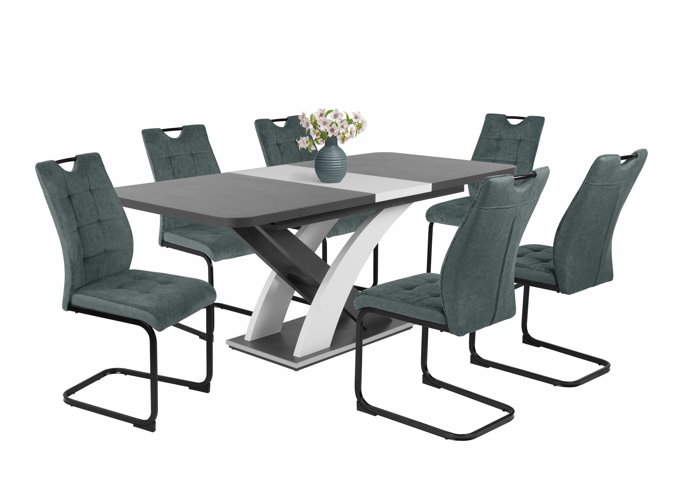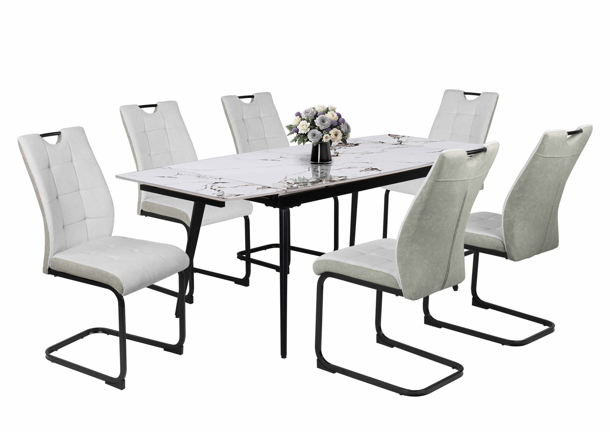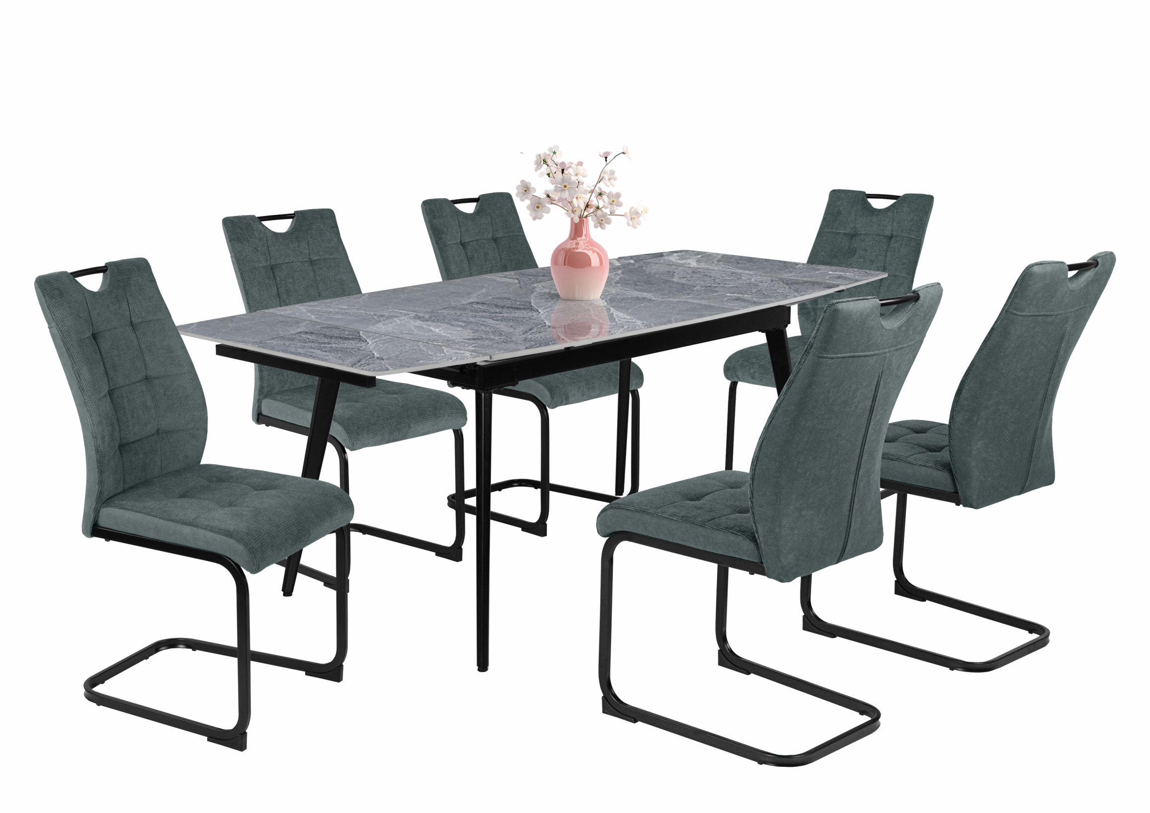 – Szövet ülőfelület és háttámla, hátoldalán velúr hatású kárpittal, fekete porfestett fém láb.