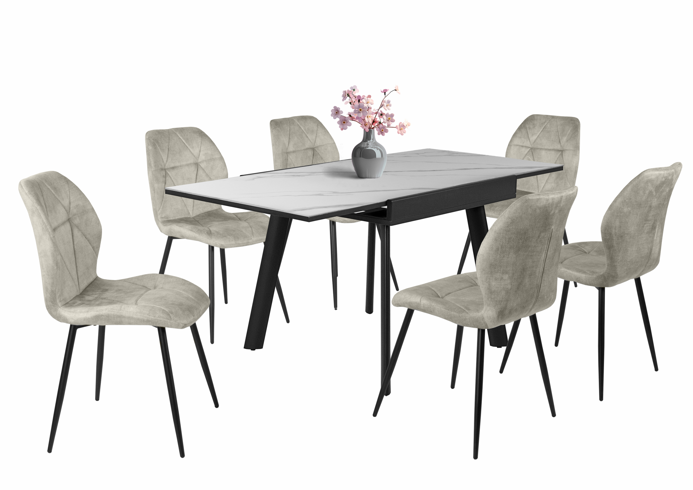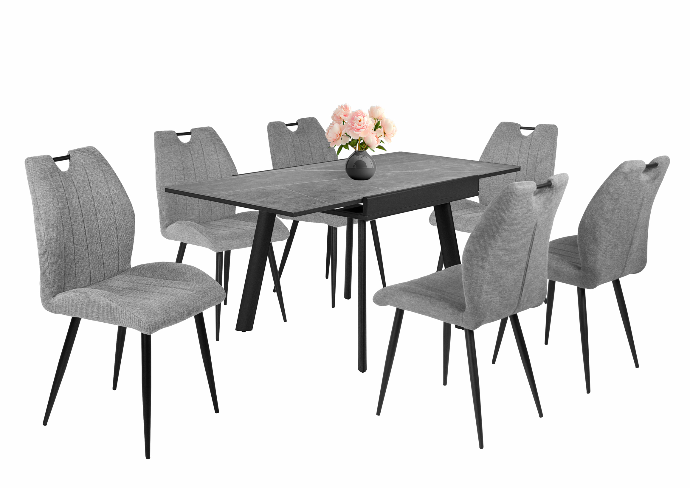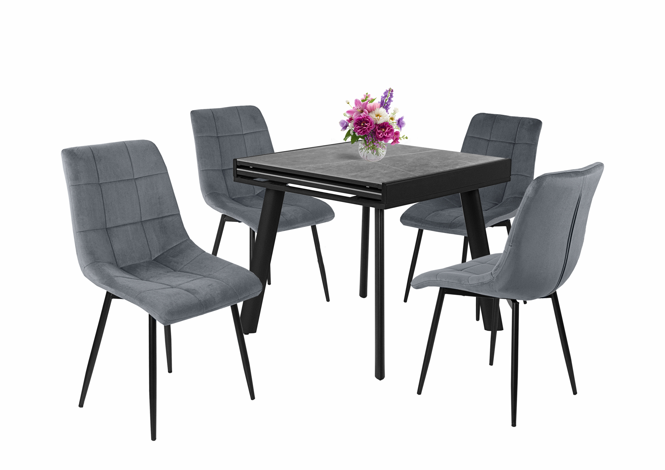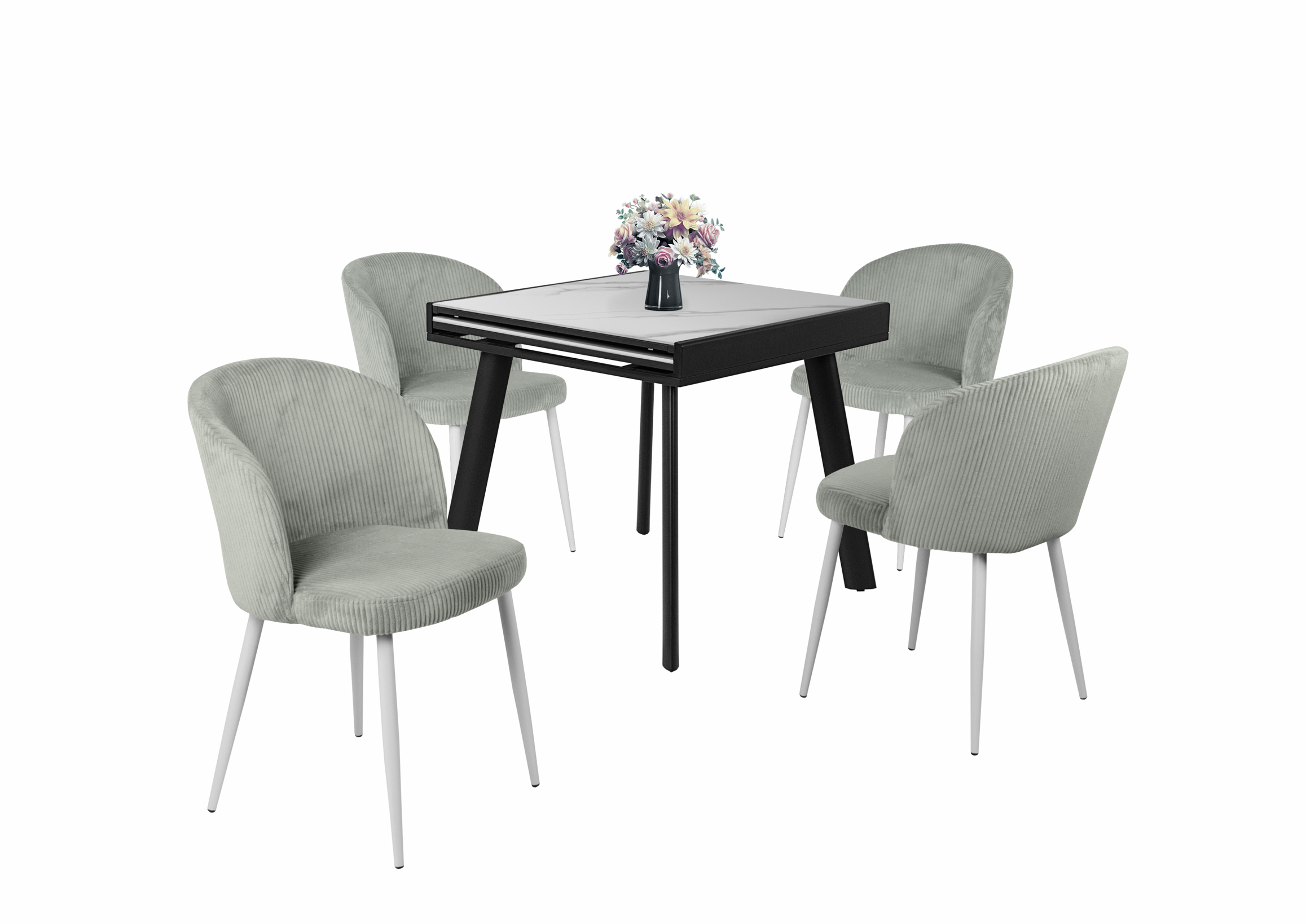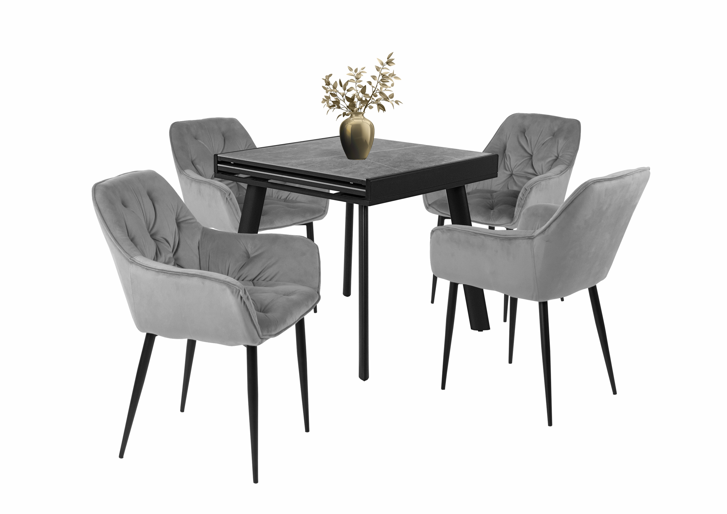 – Asztallapja 0,6 cm vastag szinterezett kőből készült, minden szinterezett kőlap mérete 80*80 cm.