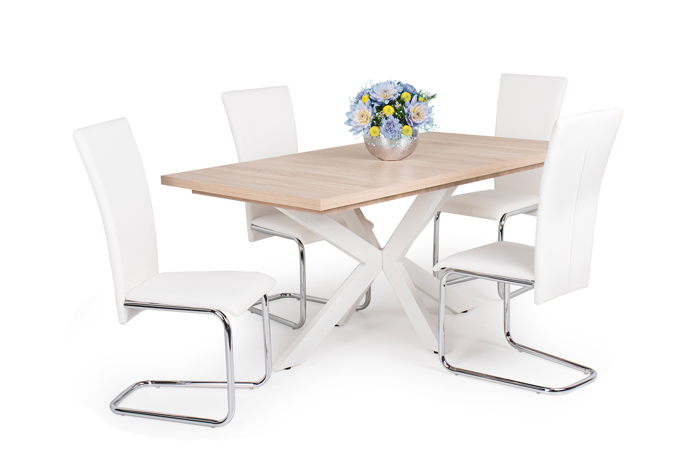 – Az állítható, szögletes porfestett fém láb szabadon variálható az asztallap színekkel.