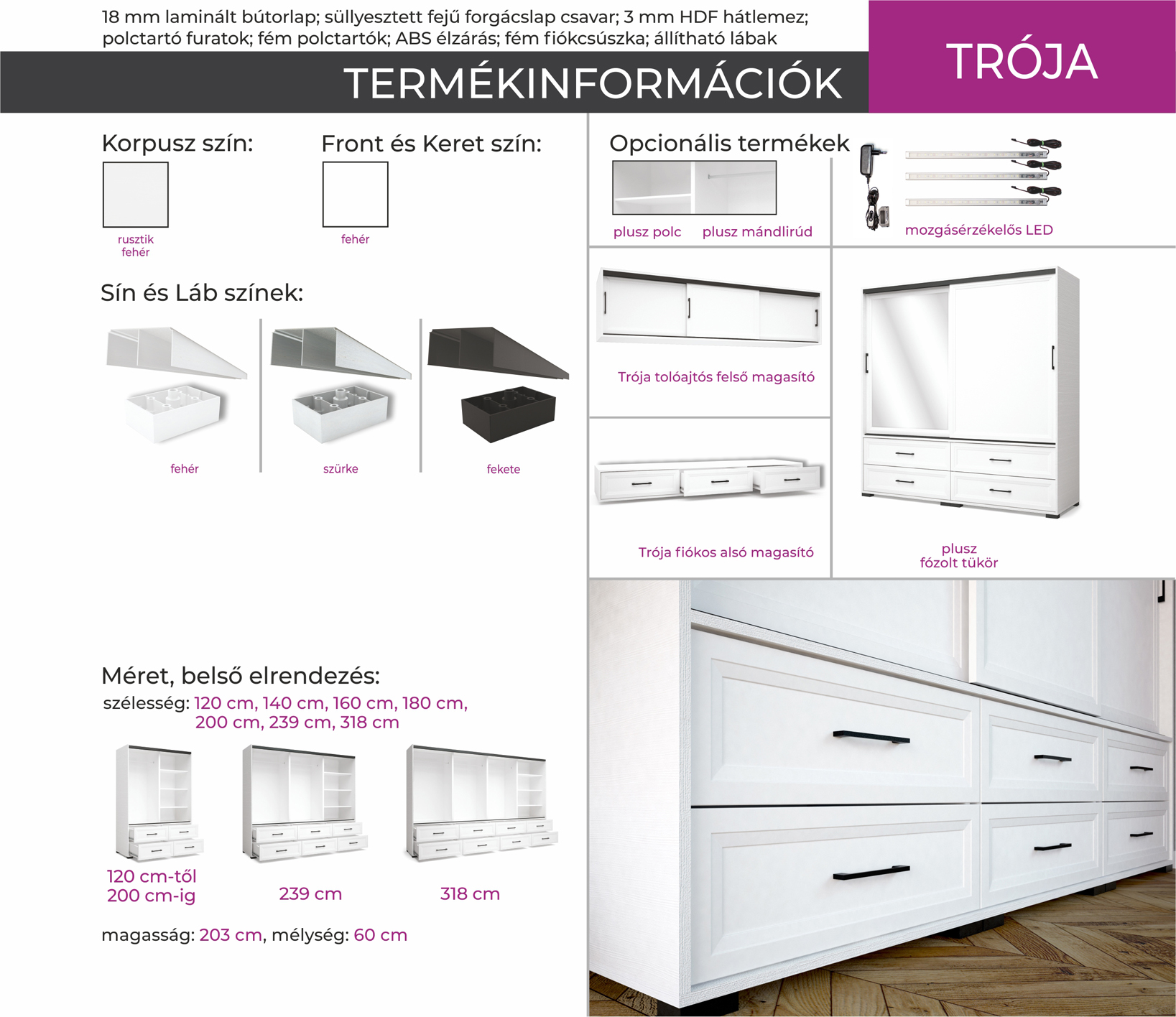 – Elegáns külsővel rendelkező gardróbunk 7 méretben kapható.