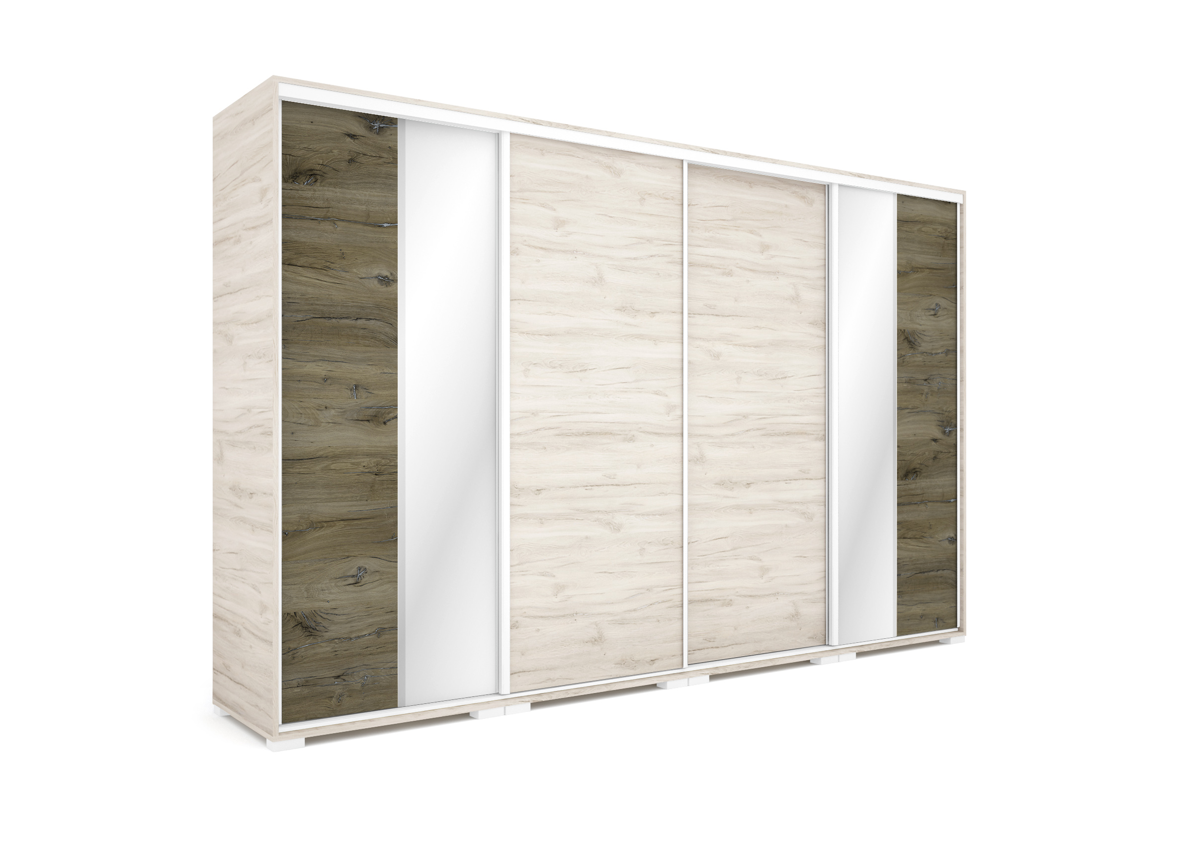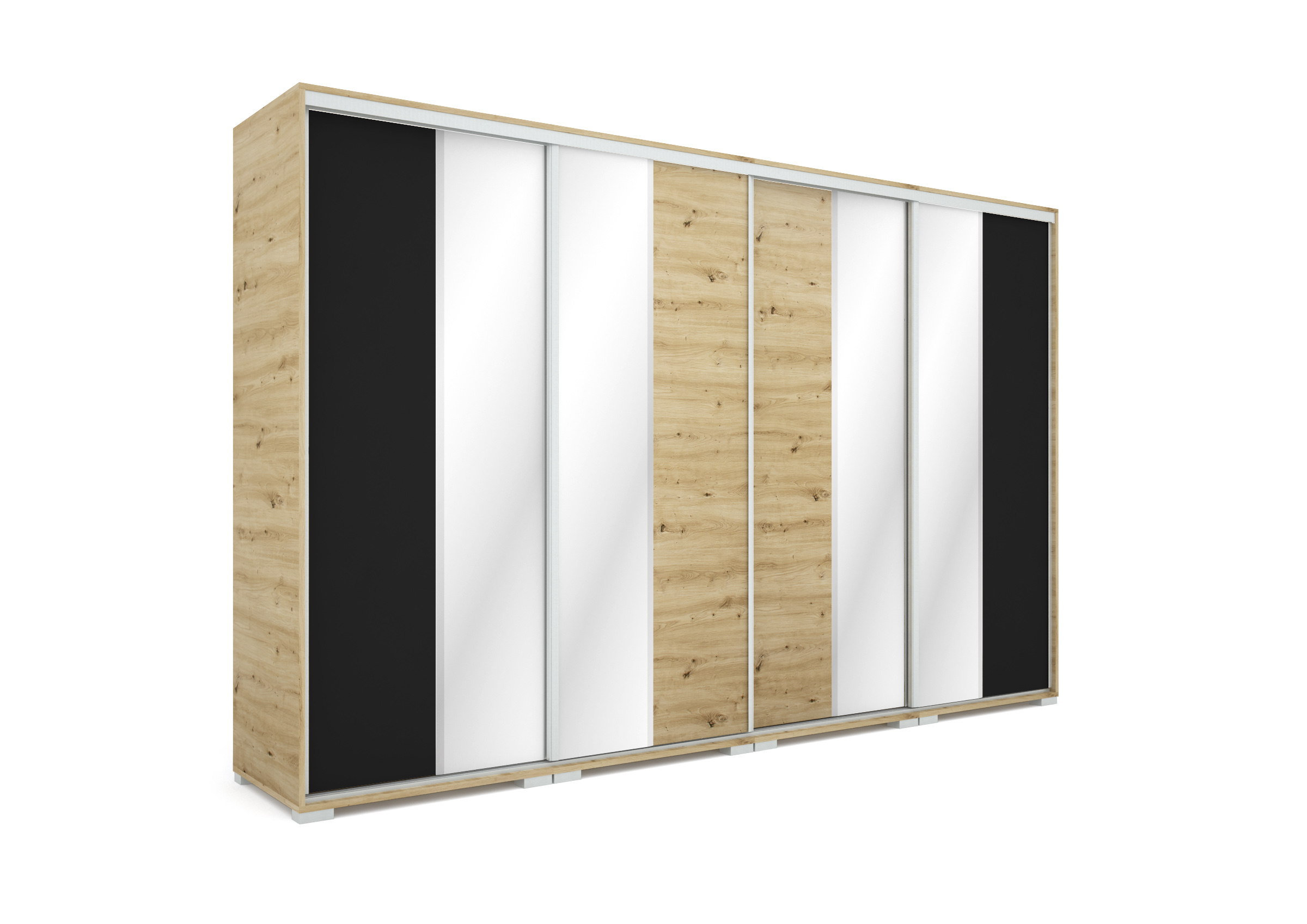 – 3 és 4 ajtós kivitelnél pedig a korpusz-középső ajtó színhez a 15-féle bútorlap színből bármely színű ajtó szabadon választható szélső ajtóként.